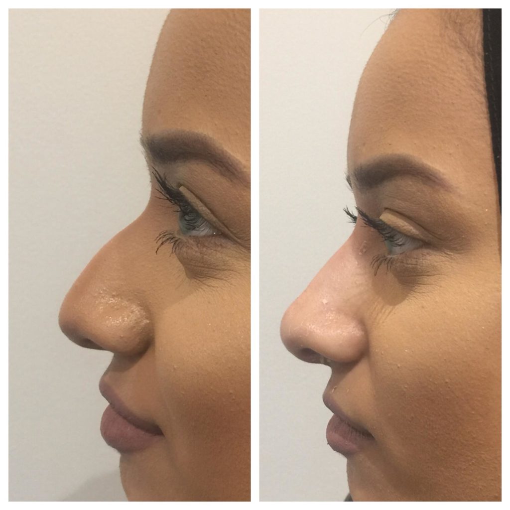 Instead of undergoing extensive surgery and anaesthesia to get your dream nose, this can be achieved with hyaluronic acid filler within 15 mins and a fraction of the cost.